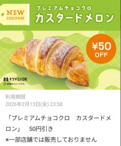 さらに、今回は、福袋に入っていた500円の商品券を使いたかったため、私は使いませんでしたが、公式アプリには「プレミアムチョコクロ カスタードメロン 50円OFFクーポン」が届いていました。